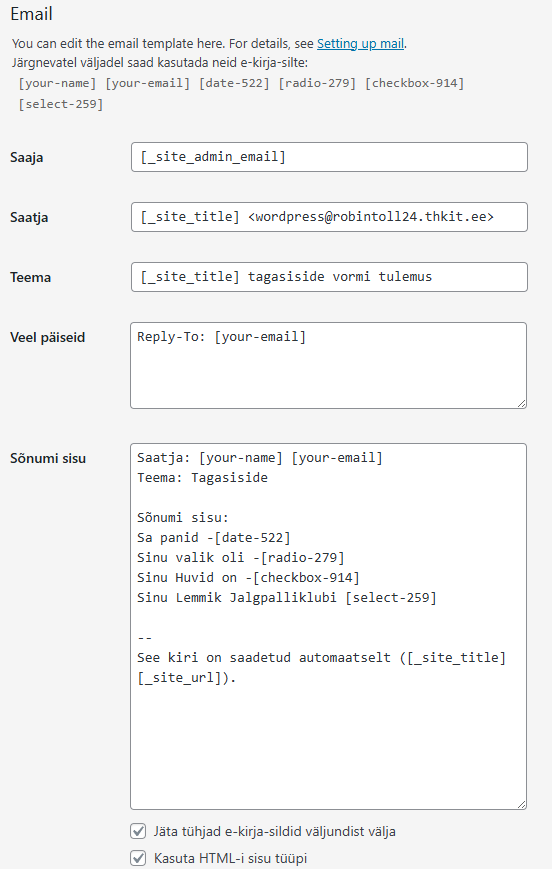 Millised vormi seadistused on tehtud
