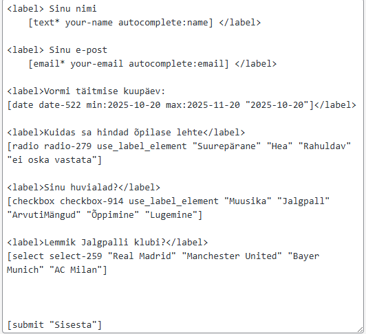 Kuidas vormi kood välja näeb?